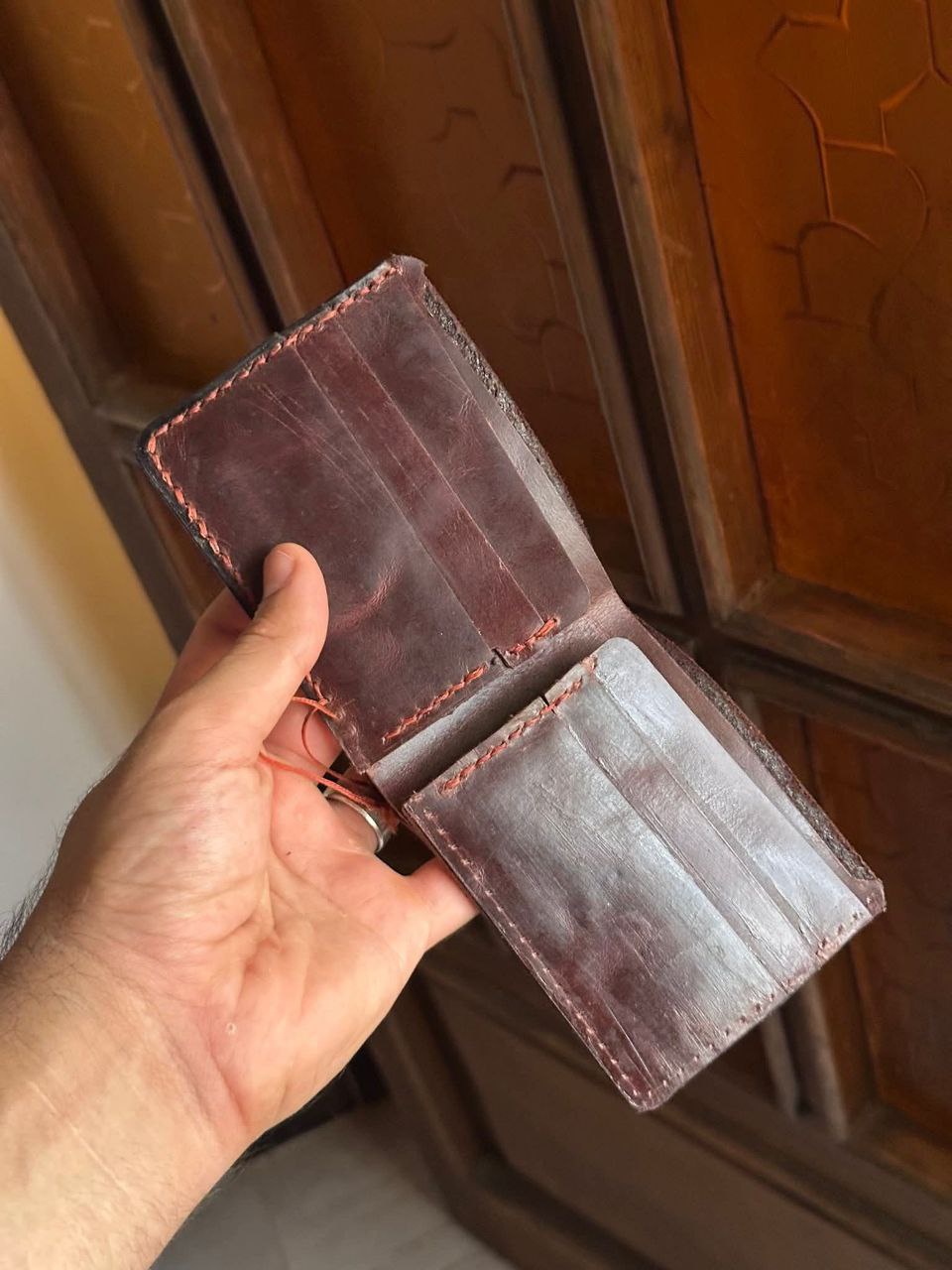 محفظة Hand made جلد طبيعي أصلية بتصميم أنيق وعصري، متينة وعملية لحفظ بطاقاتك ونقودك بأناقة يومية — اختيارك الذكي لمظهر فاخر.
